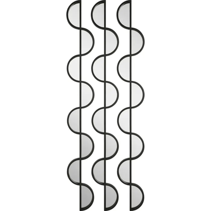 Set Of Three Iron Wall Pieces Showcase A Curved Silhouette Finished In Matte Black With Inset Mirrored Accents. May Be Hung Horizontal Or Vertical. Hang Multiple Sets Together To Create A Truly Unique Wall Display.