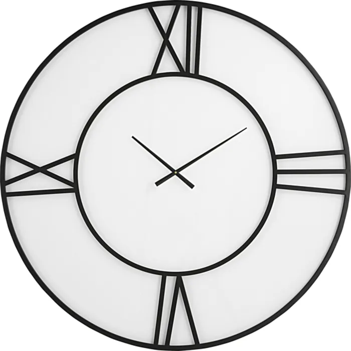 - Modern Style Wall Clock Featuring A Matte Black Frame And A White Glass Face. Quartz Movement Ensures Accurate Timekeeping. Requires One "AA" Battery.