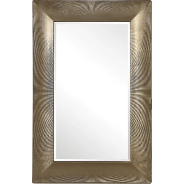 This Elegant Design Features A Gracefully Sloped Surface With A Refined, Channeled Texture, Finished In A Warm Champagne. Mirror Features A Generous 1 1/4" Bevel. May Be Hung Horizontal Or Vertical.
