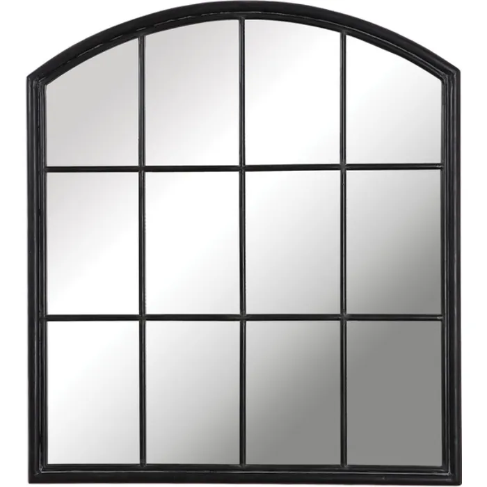 - This Arch Top, Window Inspired Mirror Was Created Using Handcrafted Iron That Is Finished In A Rustic Aged Black Accented With Light Gray Distressing.