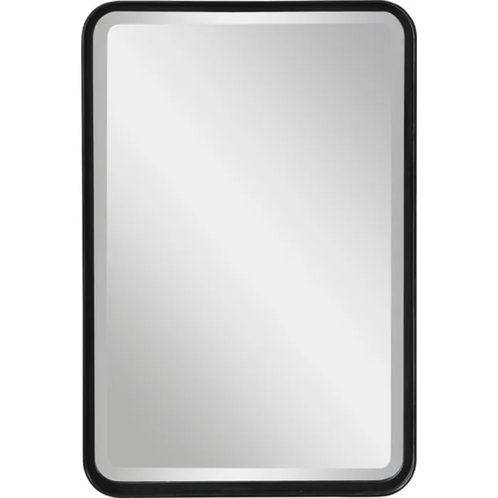- Versatile In Design, This Vanity Mirror Is Constructed From A Forged Metal Strap Finished In Matte Black. The Mirror Has A 1 1/4" Bevel And May Be Hung Horizontal Or Vertical.