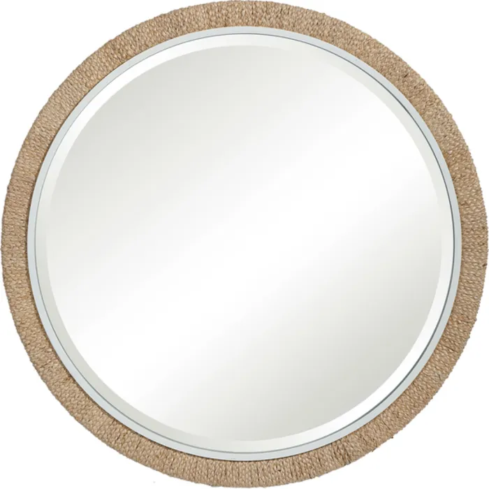 Finish: Influenced By Modern Coastal Style, This Round Mirror Has A Braided Banana Leaf And Matte White Frame Exuding A Light And Airy Feel. The Piece Is Accented By A Generous 1 1/4" Bevel.