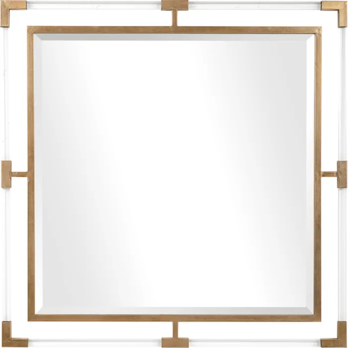 Finish: This Mirror Can Certainly Serve As A Focal Point For Any Room. Combining Forged Iron Finished In A Metallic Gold Leaf, With Suspended, Clear Acrylic, Solid Bars Creating A Modern Feel. Mirror Has A Generous 1 1/4" Bevel.