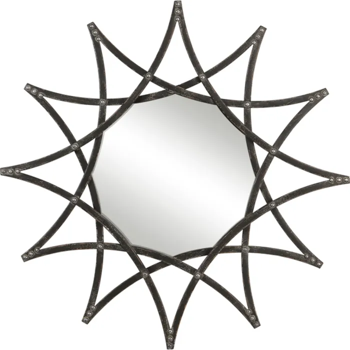 - Handcrafted From Forged Iron, This Mirror Showcases A Star-shaped Frame Finished In An Aged Crackled Charcoal With A Light Gray Glaze And Antiqued Silver Rivet Like Accents.