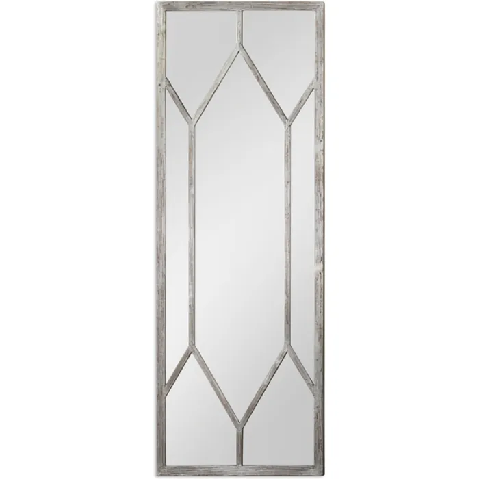 This Oversized Mirror Features A Distressed, Silver Leaf Frame With Noticeable Wood Grains. May Be Hung Horizontal Or Vertical.