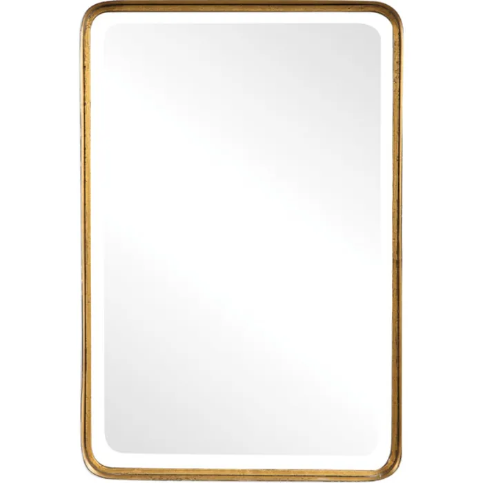- This Vanity Mirror Features A Petite Yet Deep Metal Band Surrounding An Offset Inner Ledge Finished In A Lightly Antiqued Gold Leaf.