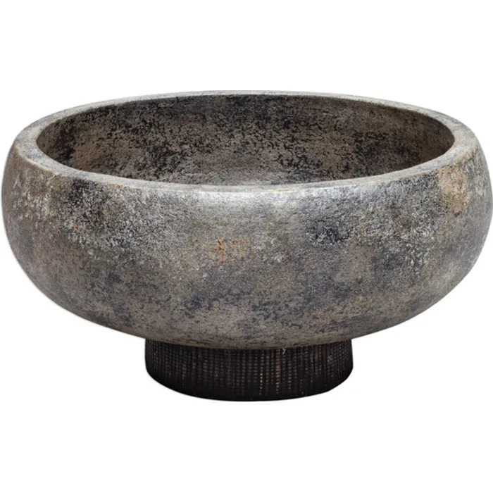 Color: Terracotta Bowl Finished In An Aged Black With Gold Highlights And Accented By A Water Hyacinth Covered Base.