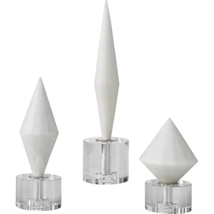 • Elegant White Diamonds Made Of Granulated Marble That Accurately Replicates The Look Of Thassos Marble Atop Crystal Bases. Sizes: Sm-5x7x5, Med-4x10x4, Lg-4x14x4