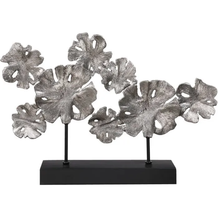 Finish: Inspired By Lotus Flowers, This Sculpture Is Finished In A Contemporary Silver Leaf With Noticeable Texture And Distressed Details. The Piece Is Supported By An Iron Foot Finished In Matte Black.