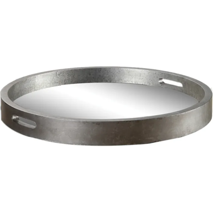 Lightly antiqued silver finish with antiqued mirror interior. Designer: Jim Parsons Dimensions: 22 W X 2 H X 22 D (in) Weight (lbs): 16 Ship Via UPS: Yes UPC Number: 792977199978
