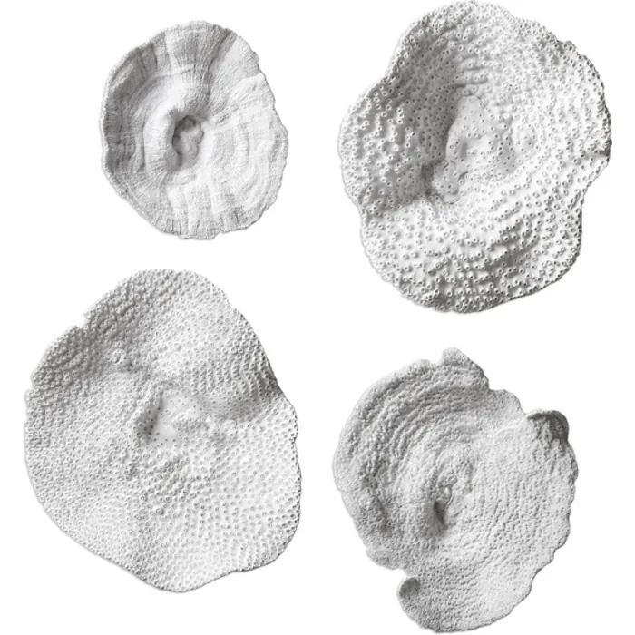 Heavily textured to mimic live sea coral and finished in antiqued white. These may be hung on a wall, with attached hangers, or displayed as table top accessories. Sizes: Sm-10x9x3, Med-13x11x3, Lg-15x13x5, L-Lg-16x14x4 Designer: Grace Feyock Dimensions: 16 W X 14 H X 4 D (in) Weight (lbs): 12 Ship Via UPS: Yes UPC Number: 792977201701