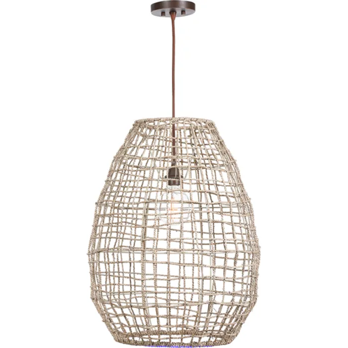 Natural Woven Sea Grass In A Cross Weave Pattern Gives Us This Wonderful Airy 1 Lt Pendant With Brushed Agaed Bronze Details. Supplied With 1-60 Watt Max Edison Socket And Includes 15'cord For Adjustable Installation.