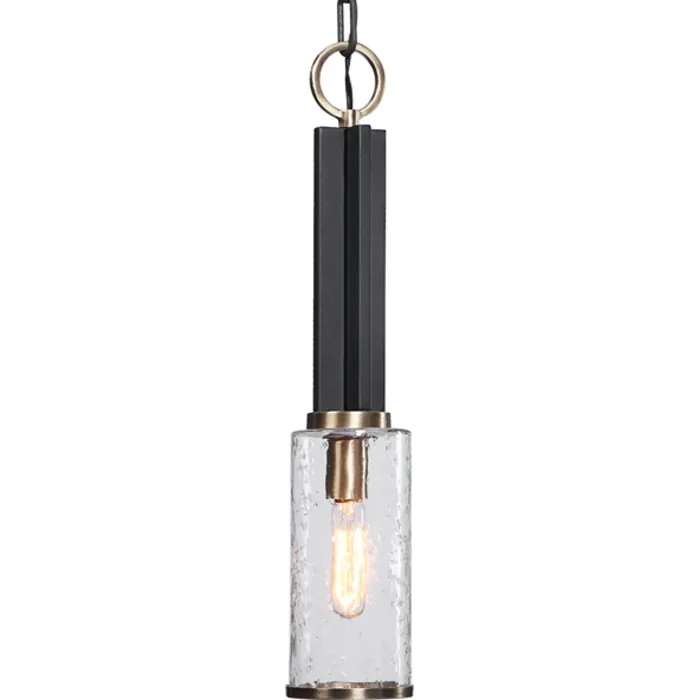 Refined Industrial With Clean Lines On Our 1 Lt. Mini Pendant Features A Sanded Black Finish On The I-beam Style Frame With Refined Antique Brass Accents And Clear Meteor Shower Glass Shade. Supplied With 1-60 Watt Max Edison Sockets Also Includes 5’ Of Chain And 12’ Of Wire For Adjustable Installation.