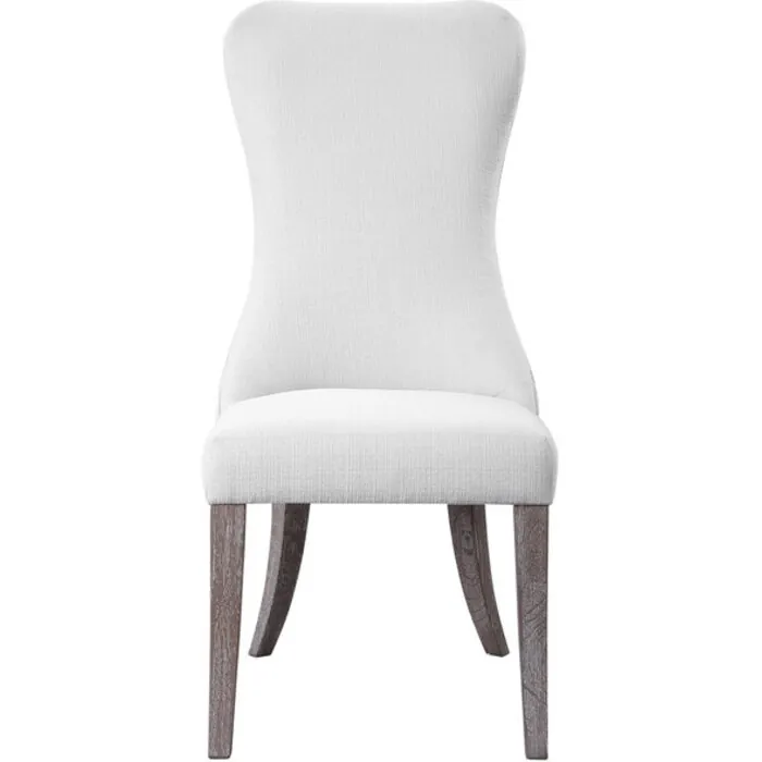 - Perfect For A French Country Or Farmhouse Setting, This Armless Chair Features A Feminine Silhouette Finished In An Off-white Slubbed Performance Fabric With Wire-brushed Solid Oak Legs Finished In Dark Walnut With A Light Gray Wash. Seat Height Is 20".