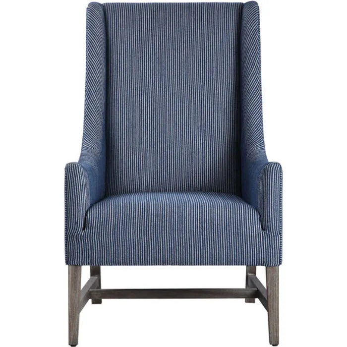 - Showcasing A Classic Wingback Style With A Coastal Feel, This Accent Chair Features A Blue And White Organically Striped Fabric, Resting On Naturally Finished Solid Wood Legs. Seat Height Is 19".