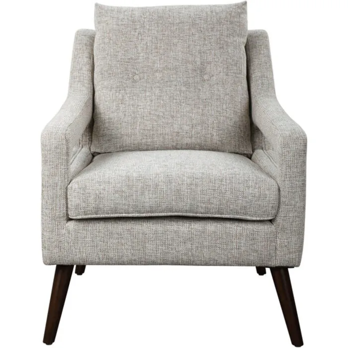 Finish: A Nod To Classic Scandinavian Style, This Open Arm Style Chair Is Tailored In A Woven Linen Blend Fabric In Natural Stone Hues With A Button Tufted Back Cushion And Dark Walnut Finished Wood Legs. Seat Height Is 19".
