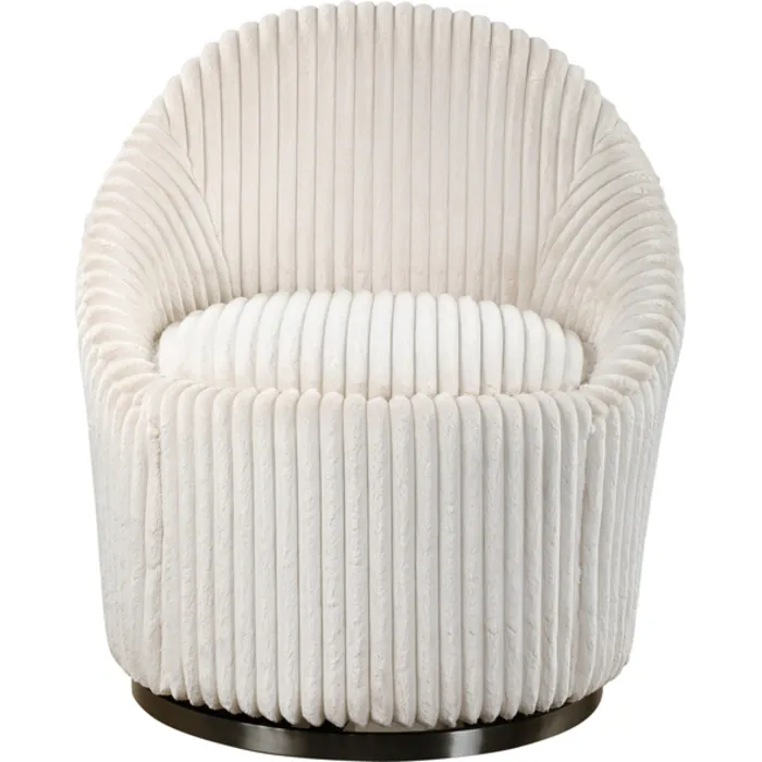 Color: A Blend Of Contemporary And Feminine Styles, This Chair Is Upholstered In A Luxurious Fluted Ivory Chenille Fabric And Is Accented By A Stainless Steel Swivel Base Finished In Brushed Black Nickel. Seat Height Is 19".
