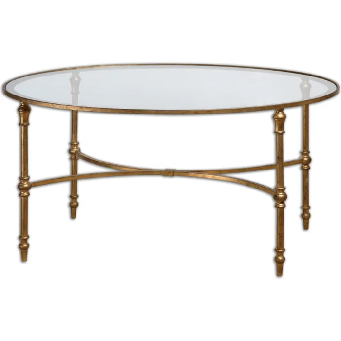 A Graceful, Oval Design In Gold Leafed, Forged Iron Under Sturdy, Clear Tempered Glass.