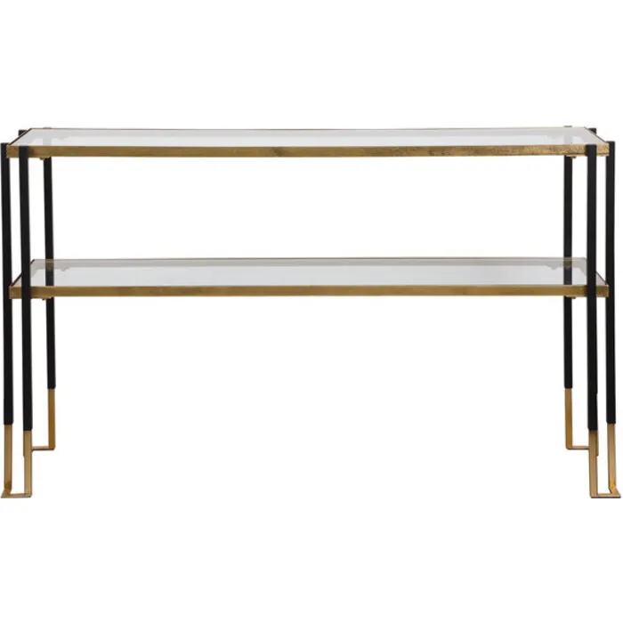 Color: Featuring A Clean Lined Solid Iron Frame, This Contemporary Console Is Finished In A Two-toned Matte Black And Brushed Gold. Has Two Tempered Glass Shelves.