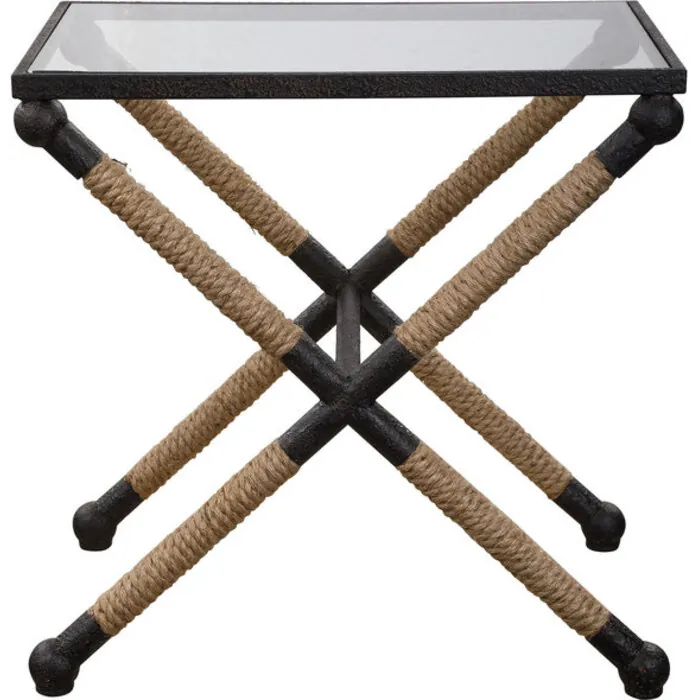 Color: A Nod To Classic Coastal Style, This Accent Table Features A Rustic Iron Frame Wrapped In Natural Fiber Rope Accents Topped With Clear Tempered Glass.