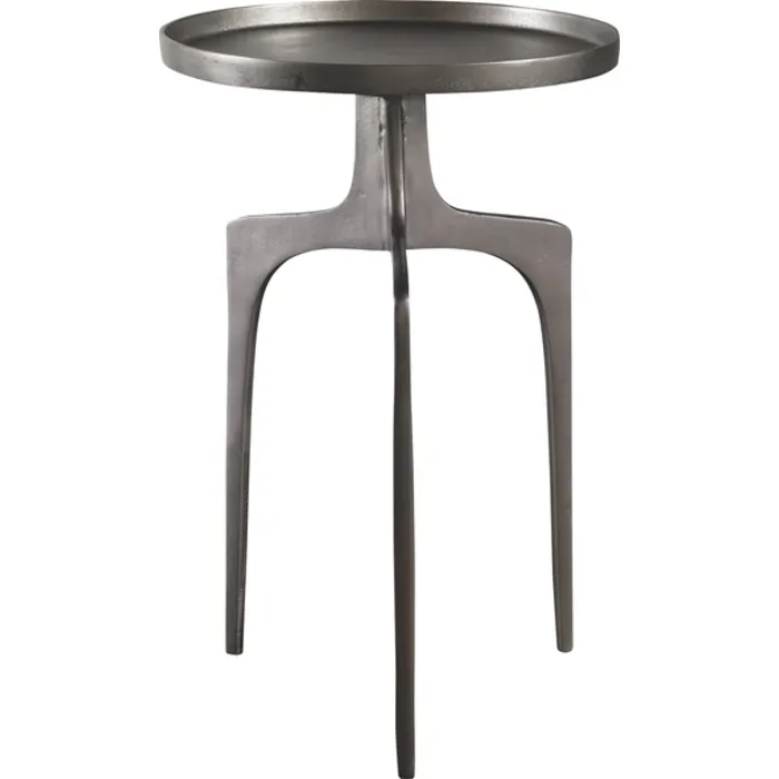 - Providing An Organic Global Feel, This Cast Aluminum Accent Table Features A Shapely Curved Base And Round Top, Finished In A Textured Nickel.