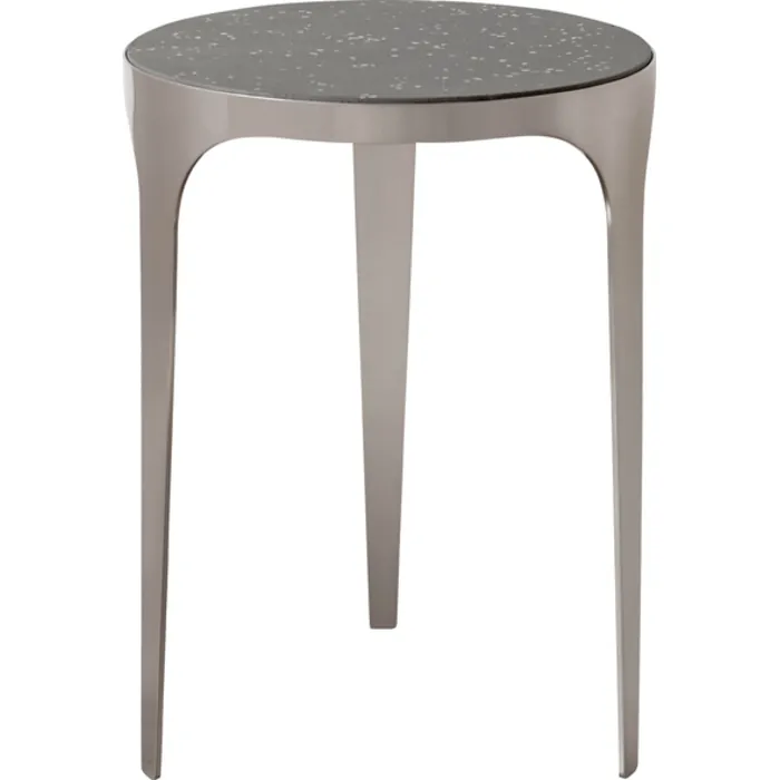 - This Modern Side Table Features A Circular Top Made From Light Gray Concrete With White Fleck Details, Creating A Terrazzo Look. The Sleek Metal Base Is Finished In Plated Brushed Nickel.