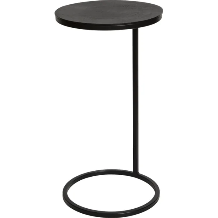 - Modern And Streamlined, This Round Accent Table Is Constructed In An Aged Black Iron Featuring A Cast Textured Aluminum Slab Top Finished In A Plated Antique Bronze