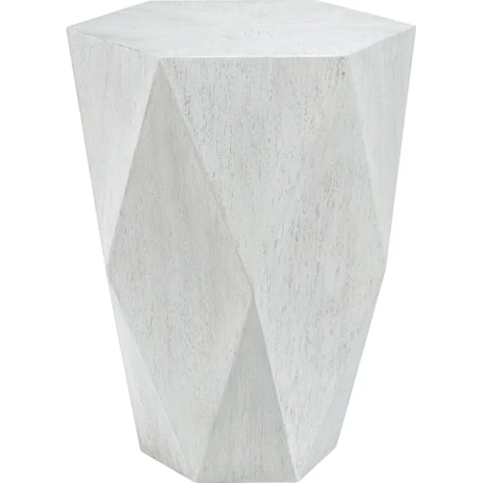 - This Unique Geometric Side Table Features A Sunburst Top In Mango Veneer In A Fresh White Ceruse Finish.