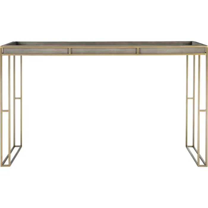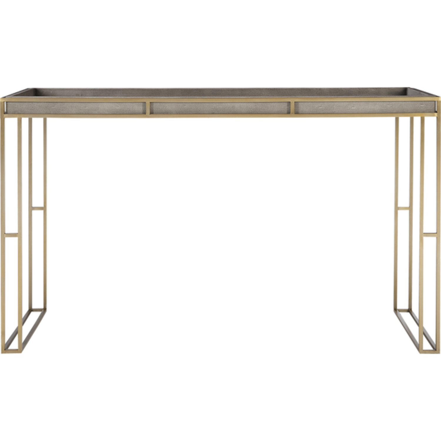 - Exhibiting A Modern Minimalist Design, This Tray Style Console Table Features A Rich, Charcoal Gray Faux Shagreen Paired With A Plated Brushed Brass Steel Frame.