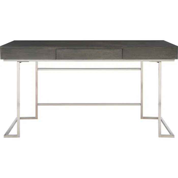Outfit Your Office With This Clean-lined Contemporary Desk, Featuring An Oak Veneer Top Finished In A Smoke Gray With A Subtle Light Gray Wash, Atop A Stainless Steel Base Finished In A Plated Brushed Nickel.