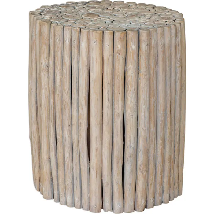 - Artfully Constructed From Natural Teak Wood Pieces, This End Table Features A Bleached Driftwood Finish That Enhances The Natural Wood Grain.