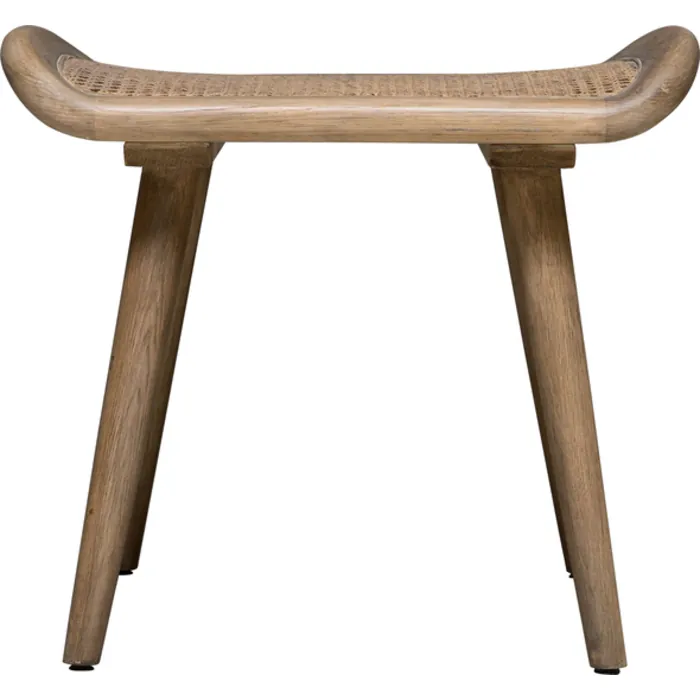 - A Nod To Scandinavian Style, This Small Bench Features A Solid Oak Frame In A Dry Oak Finish With Tapered Legs And A Curved Seat, Showcasing A Woven Rattan Top.