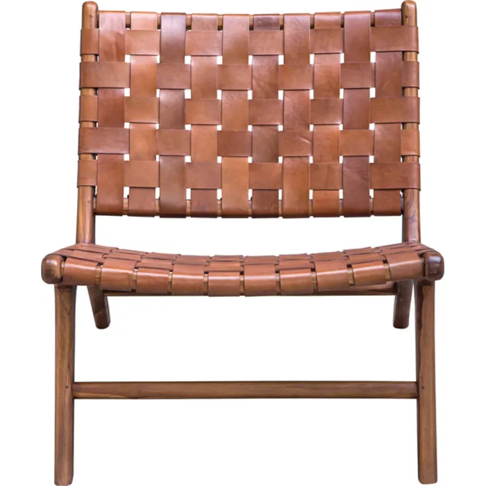 - A Staple Mid-century Modern Design, This Stylish Accent Chair Features A Basket Weave Of Cognac Leather Straps Accented By A Naturally Finished Solid Teak Wood Frame. Seat Height Is 16".