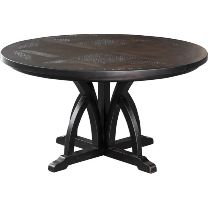Soft, Weathered Black Finish On Solid Mango Wood Arched Motif Base, With Rub-through Distressing On The Mindi Veneer Inlay Top.