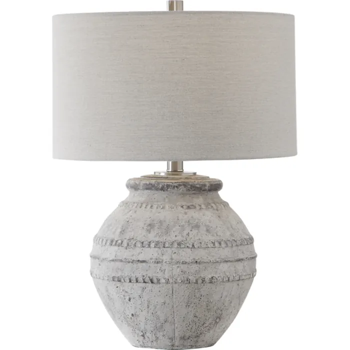 - Showcasing An Old-world Style, This Ceramic Table Lamp Has A Heavily Distressed Stone Ivory Finish And Aged Gray Undertones, Accented With Brushed Nickel Plated Details.