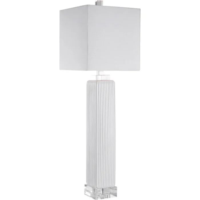 - Showcasing A Refined Transitional Style, This Buffet Lamp Can Be Easily Placed With Its Square Ribbed Base Finished In A Gloss White Glaze, Paired With Thick Crystal Details And Brushed Nickel Accents.