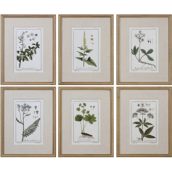 Uttermost Green Floral Botanical Study Prints S/6 33651