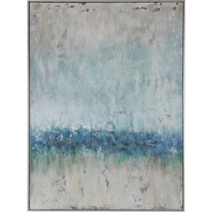Finish: Thin Silver Gallery Frame. With Colors Of Creams, Light Browns, Sea Foam, Greens, Various Shades Of Blue And Gray. Heavily Textured.