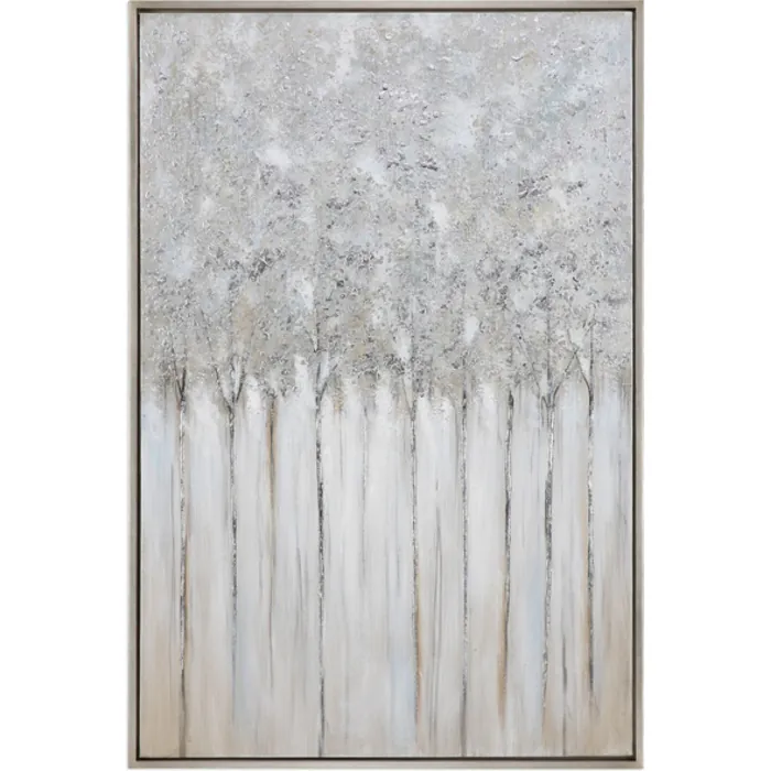 Hand Painted On Canvas, This Artwork Is Stretched And Attached To A Wooden Frame. A Warm, Silver Champagne Frame Encases The Artwork. Due To The Handcrafted Nature Of This Artwork, Each Piece May Have Subtle Differences.