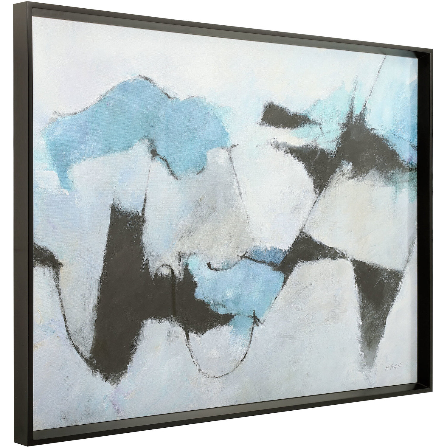 - Matte Black Frame, Under Glass, Blue, Black, Gray, White Printed Abstract, Masculine, Modern