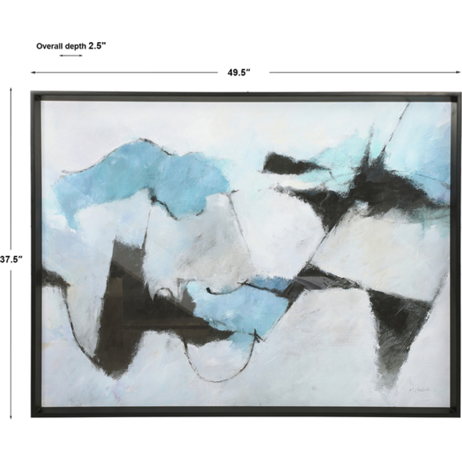 Finish: Matte Black Frame, Under Glass, Blue, Black, Gray, White Printed Abstract, Masculine, Modern