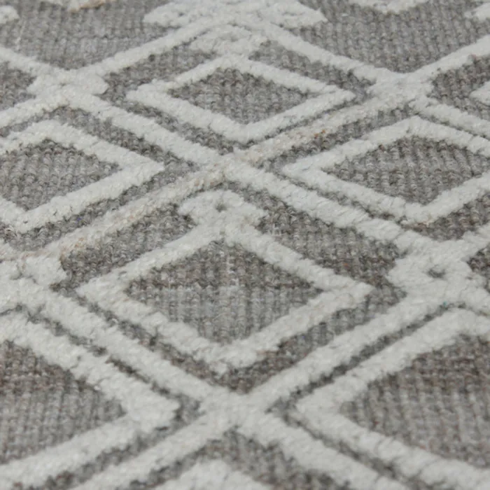 Woven Natural Gray Wool, Featuring An Ivory, Over Tufted, Tribal Inspired Design.
