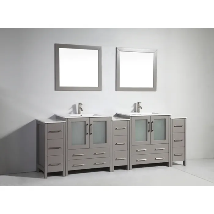 Vanity Art Double Sink Bathroom Vanity White Ceramic Bathroom Vanity Top Va3030-96 In Gray VA3030-96G