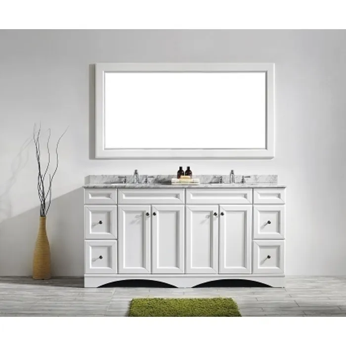Naples 72 inch Bathroom Vanity in White with Carrara White Marble Countertop With Mirror 710072-WH-CA