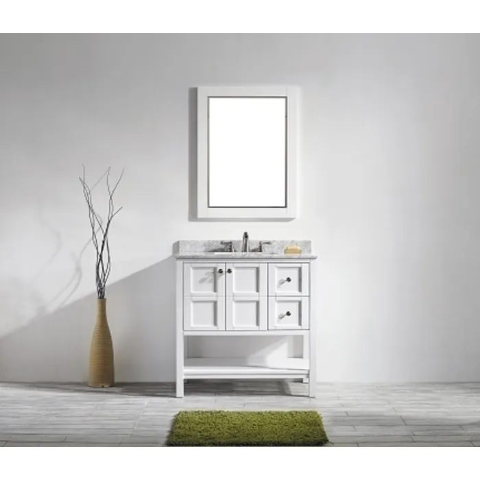 Florence 36 inch Bathroom Vanity in White with Carrara White Marble Countertop With Mirror 713036-WH-CA