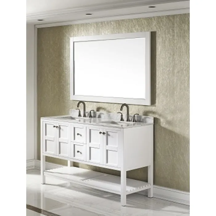 Florence 60 inch Bathroom Vanity in White with Carrara White Marble Countertop With Mirror 713060-WH-CA