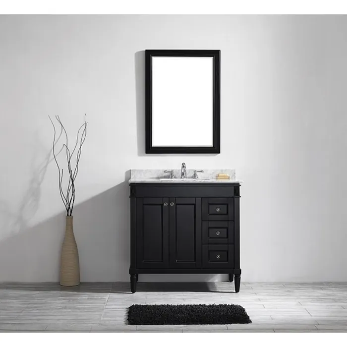 Evoke a modern feel in your bathroom with the addition of the Vinnova Catania Vanity. Clean, simple lines bring refreshing beauty to this understated piece, which is ideal for both contemporary and traditional decors. The optional mirror completes this set in perfect balance. Satisfy your unique tastes with either a Carrara White marble countertop or Black Galaxy granite countertop.