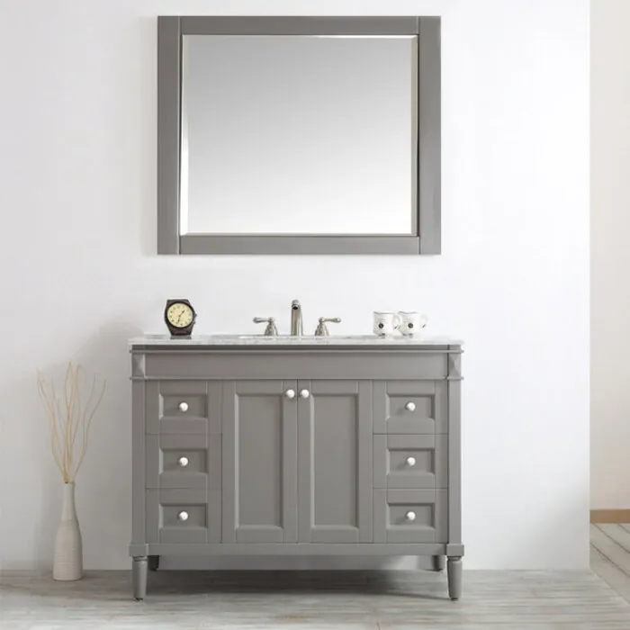 Catania 48 inch Bathroom Vanity in Grey with Carrara White Marble Countertop With Mirror 715048-GR-CA