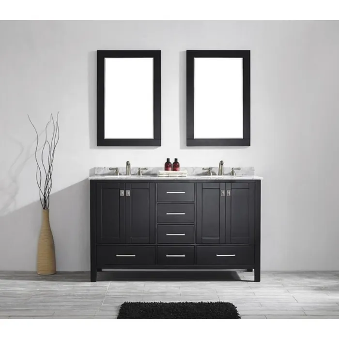 Gela 60 inch Bathroom Vanity in Espresso with Carrara White Marble Countertop With Mirror 723060-ES-CA