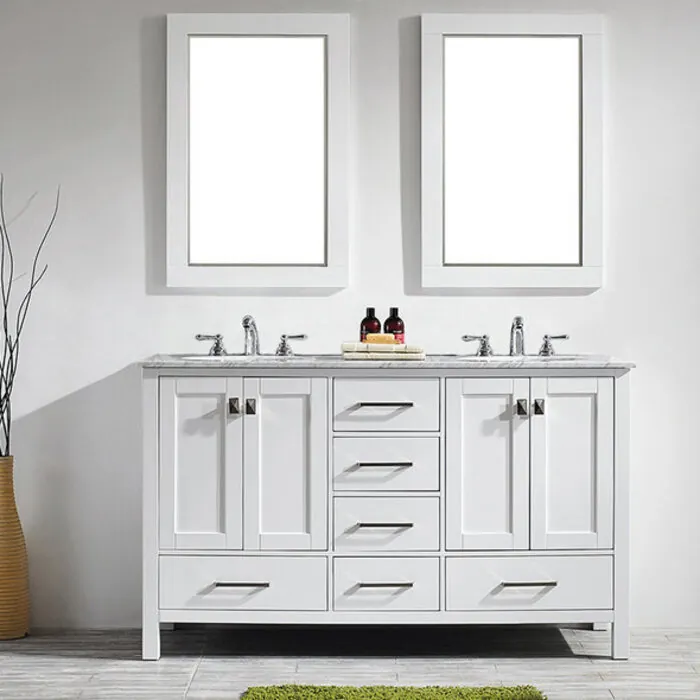 Gela 60 inch Double Bathroom Vanity in White with Carrara White Marble Countertop With Mirror 723060-WH-CA